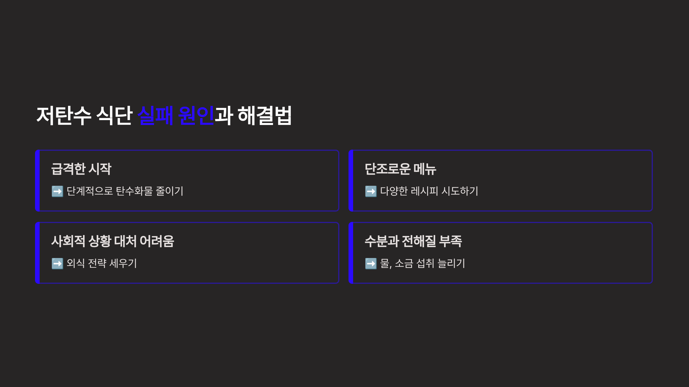 ❌ 저탄수 식단 실패 유형별 해결책