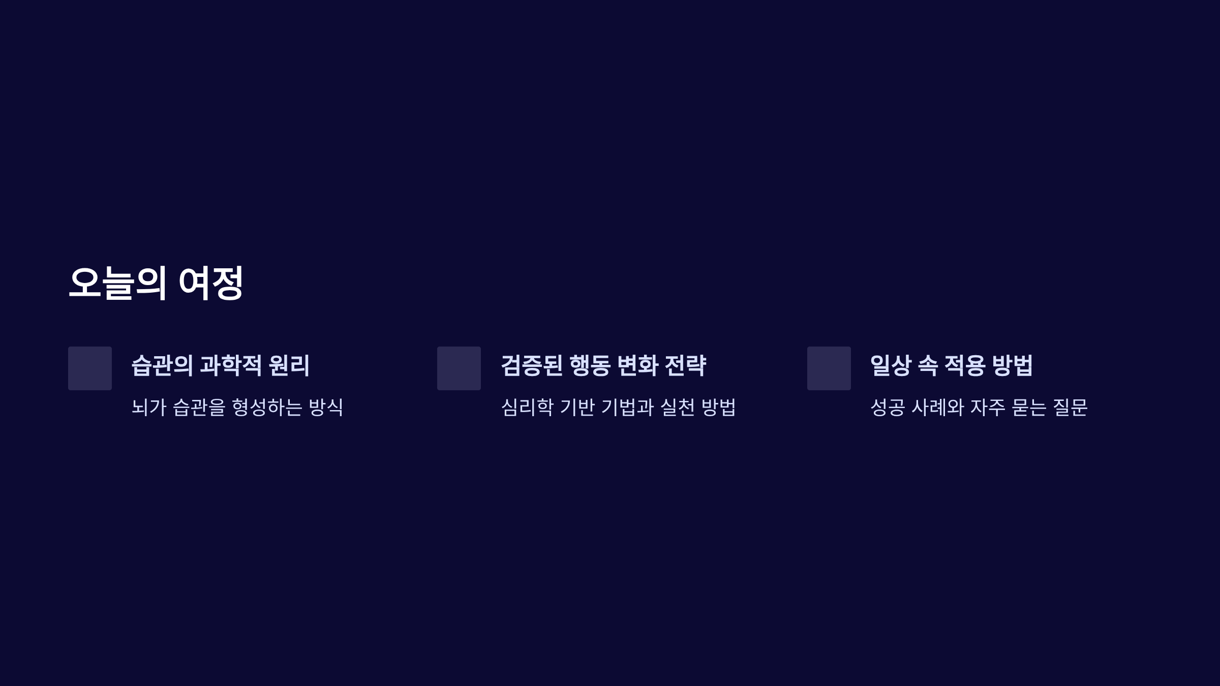 | 습관 쌓기 | 기존 습관에 연결 | 커피 후 명상 | 78% |