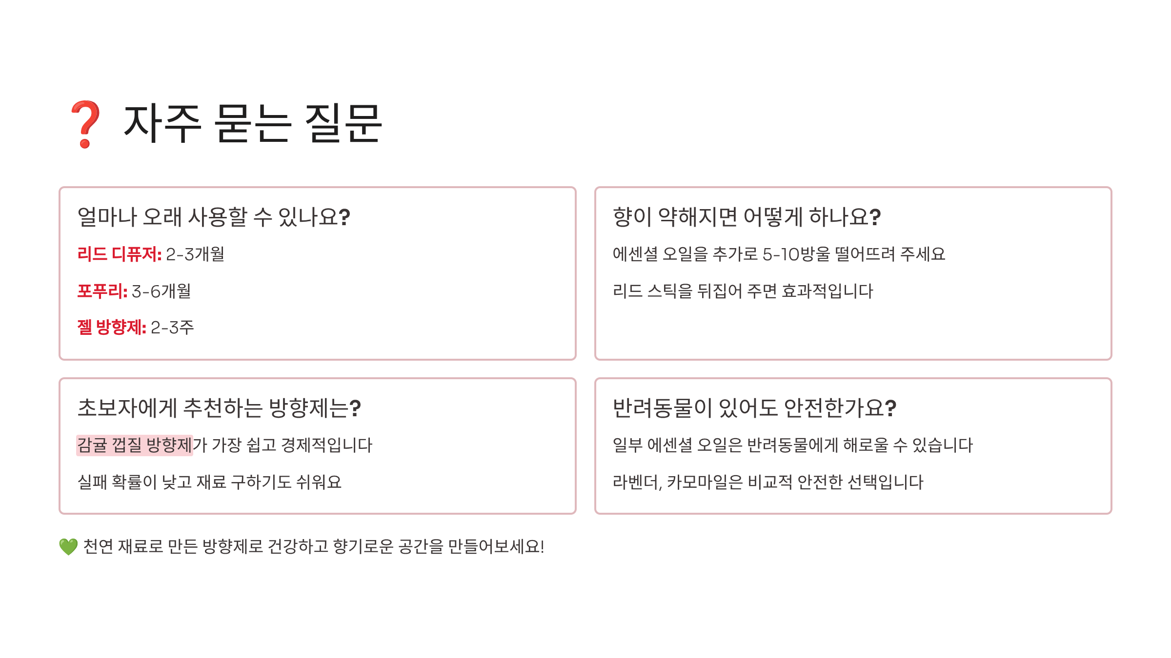 Q1. 천연 방향제는 얼마나 오래 사용할 수 있나요?