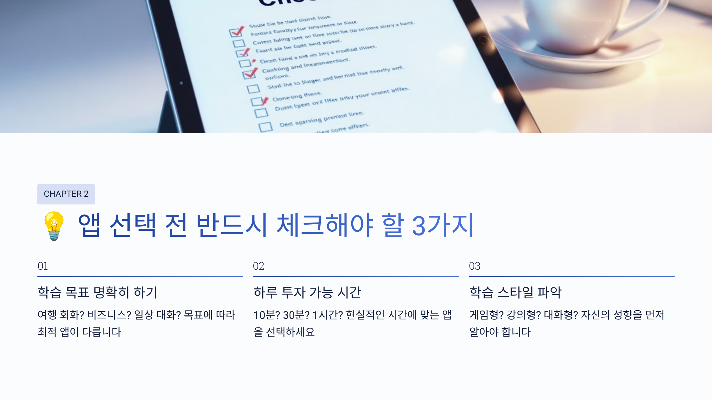 영어회화 앱 실패의 본질은 앱 자체의 문제가 아니라 학습자의 준비 부족인 경우가 많아요. 어떤 앱이든 꾸준히 3개월 이상 활용하면 분명히 효과가 있거든요. 문제는 그 3개월을 버틸 수 있느냐 없느냐의 차이예요. 지금부터 소개할 내용들을 잘 참고하시면 실패 확률을 크게 줄일 수 있을 거예요.